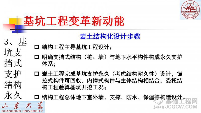山东大学-- 李连祥教授于第八届深基础工程论坛会中分享的关于积极推动基坑工程变革--兼谈支护结构永久化与可回收的见解