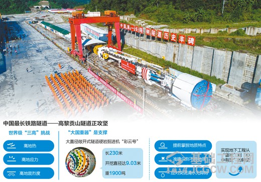“受高黎贡山地质条件制约,采用传统钻爆法施工,8公里就是极限。要想高质量、高效率地完工,必须有大型的硬岩掘进机挑大梁。”中铁隧道股份有限公司党委副书记李华坤说。