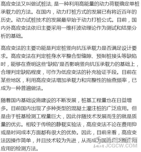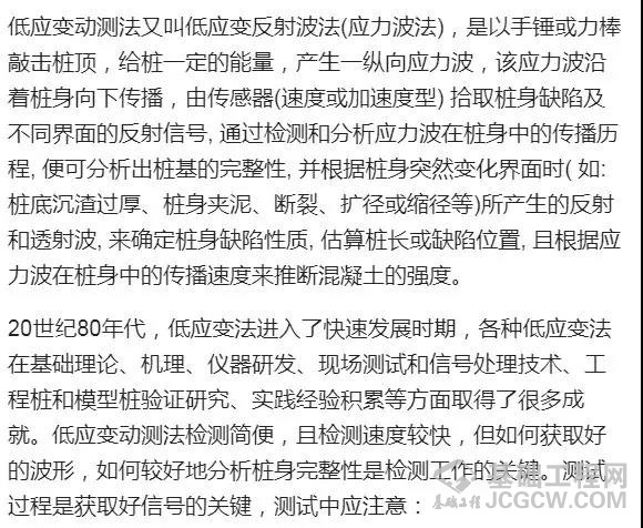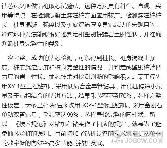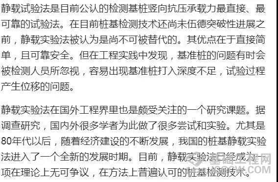 根据《建筑基桩检测技术规范》(JGJ106-2003),目前桩基检测的主要方法有静载试验法、钻芯法、低应变法、高应变法、声波透射法等几种。 1. 静载试验法