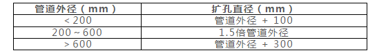 扩孔的目的是为了实现管道的顺利回拖,因此需要根据施工管道规格确定扩孔直径。管道规格与扩孔直径的关系可参考下表: