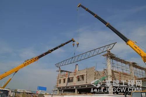 3.雨后吊装时,应首先检查吊车本身的稳定性,确认吊车本身安全未受到雨水破坏时再做试吊。将构件吊至1m左右,往返上下数次稳定后再进行吊装工作。