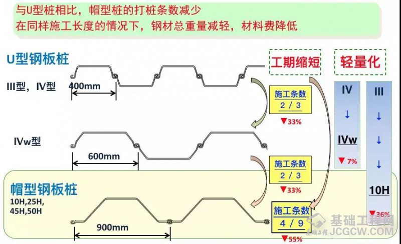 HUW工法与传统的基坑围护工艺深水基坑中的6号钢板桩、SMW工法、灌注桩等相比成本能节约5%---20%。
