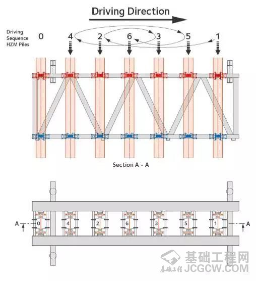 HUW工法利用全自动调节水平的定位架,先喂桩再用振动锤送桩,故日施工进度能确保20延米以上。与SMW工法、灌注桩等相比工期能节约30天以上。