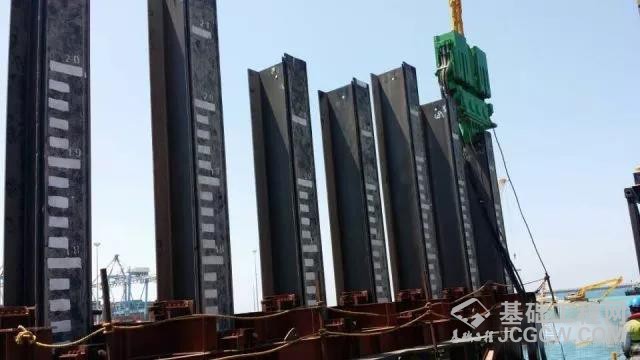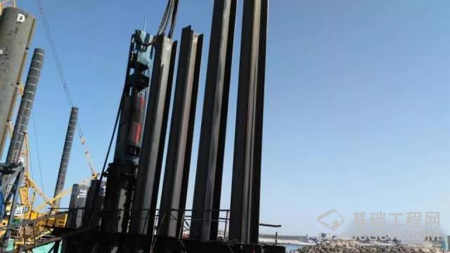 由于现场海底的土质比较松软,为了达到既定的承载能力,需保证钢管桩下沉不得少于30米,把打完桩后的钢管桩每3根焊接起来,这样就防止在打桩的过程中如果遇到其他钢管下沉的情况。这项工程比较复杂,施工的设备并不是在船舶上,而是在一个专门搭建的钢架平台上。这样的话施工设备可以更好地接近施工点的附近,可以同时施工好几根柱子。