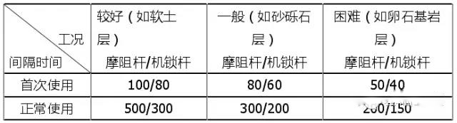 首先,献上一张钻杆保养时间表(根据地质情况、工作时间和钻杆种类进行划分)