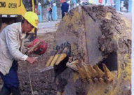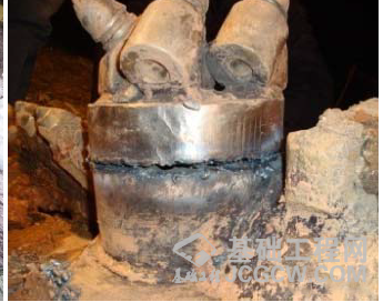 另外在此区段应勤扫孔,再放钻,防止钻屑粘糊包裹钻头侧壁造成吸钻。每斗的时间和深度应在一定范围内,泥岩层单斗进尺深度宜为40cm。在反转关闭斗底时,尽量在钻进有负荷时,这时斗底具有一定的阻力,从而防止斗底与筒钻一起反转,反转不宜超过两圈,反转过多会磨平孔底的台阶,加大了下次钻齿进入原生岩层的难度。