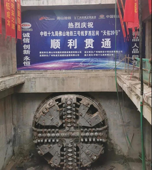 9月17日13:30,随着佛山地铁“天佑20号”盾构机刀盘破土而出,全长2043m的佛山地铁三号线工程土建工程3206-1工区罗村站~佛山西站区间左线盾构顺利完成接收,该区间右线已于6月16日洞通,至此三号线再添一条双线贯通的长距离隧道。