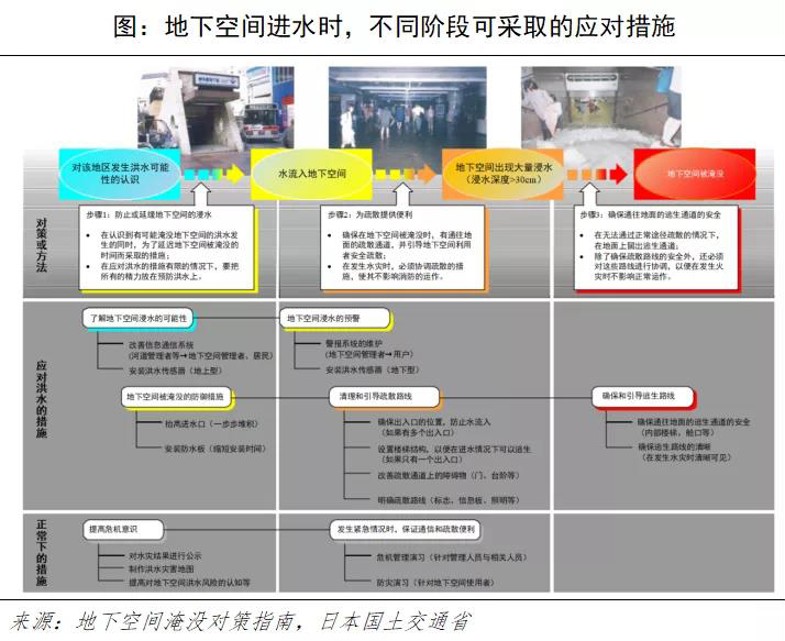 在这样的背景下,日本将地铁和地下空间的洪水防治作为一项十分重要的课题,不断地通过完善体制机制、增加优化设施、全面普及教育等方式来改进地铁和地下空间的防汛措施。