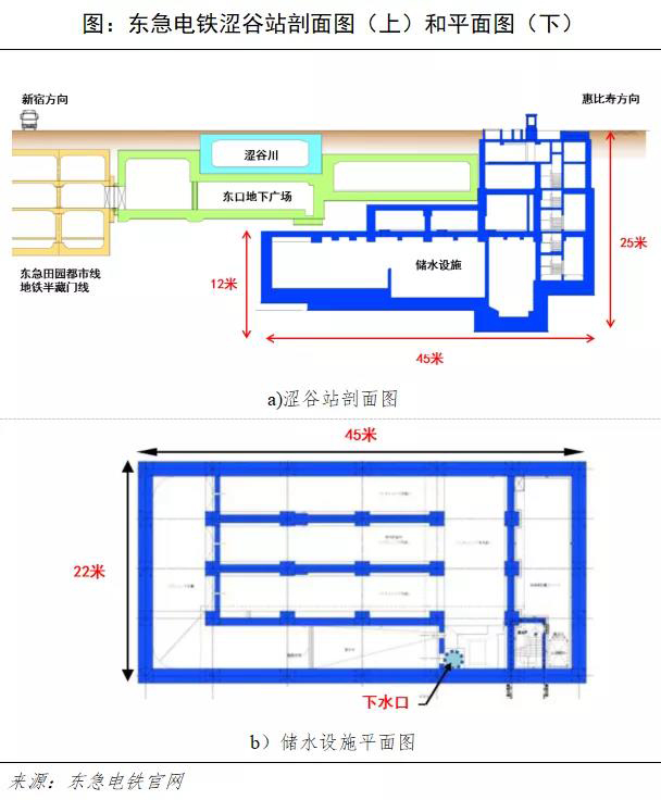 东集电铁涩谷站借助车站周边城市更新、站点周边地区土地规划改造的机会,在地铁站综合体下方建造了巨大的储水设施,用来应对近年来不断增加的暴雨侵袭。整个工程前后耗时近10年,花费达到631亿日元(约37亿人民币)。