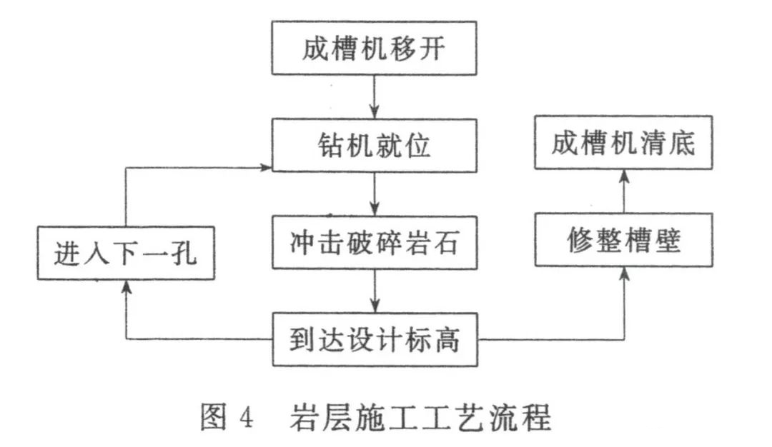 (4)槽段终槽深度应根据设计入岩深度要求,参照地质剖面图的岩层标高、成槽时的钻进速度和鉴别槽底岩屑样品等综合确定。同一槽段开挖深度宜一致,遇有特殊情况应会同监理和设计人员研究处理。