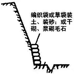 放坡开挖的基坑,当部份地段放坡宽度不够时,可采用短柱横隔板支撑、临时挡土墙支撑等简易支护方法进行基础施工。