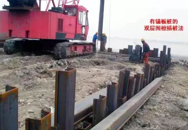 2)有锚板桩的双层围檩插桩法