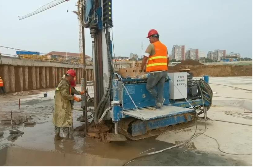 采用测量孔外钻杆长度的推倒方法进行监测成孔深度,计算精度不大于100mm,成孔深度误差应在+100/-30mm范围内。