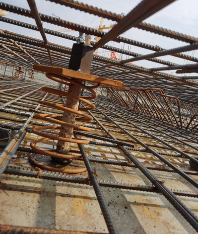 MG1锚杆扩大头以进入粉质粘土层不少于3m且总长度不少于10m为双控标准。MG2锚杆扩大头以进入强风化粗安斑岩不少于2m且总长度不少于10m双控为双控标准。而在施工过程中往往只购买10m长预应力钢筋。对于MG1锚杆进入粉质粘土层不少于3m标准无法控制,只会以总长度不少于10m为控制标准;而MG2锚杆施工中进入粗安斑岩后施工困难,进出岩层不少于2m无法保证,造成锚杆高度超过地下室顶板,需要割除超出底板顶面以上预应力钢筋。