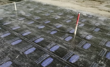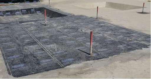 为有效减少底板渗水隐患,在预应力筋与卷材交接处根部卷材上部增加非固化橡胶沥青涂料一道,并在上部增加一道250×250见方1.5厚高分子防水卷材进行防水加强。