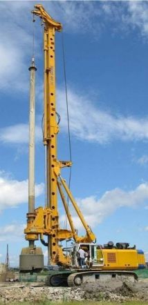 旋挖钻机成孔:是由钻杆带动钻头旋转,动力钻头正转可低速钻进,反转高速甩土,钻头旋转将土或砂粒切成碴土,然后快速提出孔外。该法可实现干法施工,不需用泥浆出碴,环保性良好,适用于黏土、粉土、砂土、淤泥质土以及部分卵石碎石地层等。