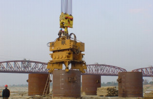 套管钻机成孔:是在钻孔的同时,用机械晃动压入一钢制套管。套管作用是防坍孔,孔中用重锤式抓斗机除土。成孔后放入钢筋笼,然后在灌注桩身砼时,逐步将套管拔出。套管钻孔法适用于非岩层的履盖土层中,对坍孔防护作用好,可在已有建筑附近施工。