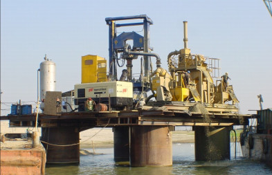 钻孔施工采用KPG-3000型液压钻机和ZSD300/210型液压动力头钻机,采用重锤导向,减压钻进,泥浆反循环方式排碴,使用ZX-500型泥浆分离器净化处理泥浆。VHP700空气压缩机提供风力。