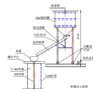 砼灌注前,对导管均应逐段进行承压水密试验,在无渗漏的条件下持荷时间不少于5分钟。导管安装完毕,底口离桩底约40cm。导管连接接头应牢固,密封。