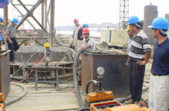 桩身混凝土灌注后24~48小时,开始压水,出浆口出水后,关闭出浆阀,继续加压,使套筒包裹的出浆口开裂,当出浆孔开裂后,逐渐减压,防止高压水回流,夹带杂物堵塞压浆孔。