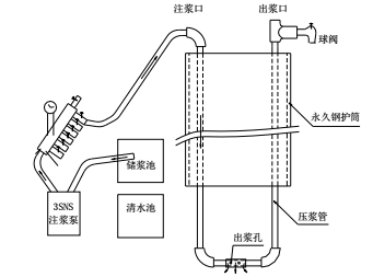 压浆浆液由水泥、膨润土、水、缓凝剂组成,其7天最小抗压强度5MPa。浆液要求流动性好,压力泌水小,初凝时间约2~3小时,粘度为8~10s。