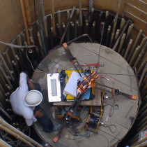钻机拆除后即可进行成孔质量检测。检测的项目有孔深、孔径、垂直度、沉渣厚度。孔深以钻杆长度控制,并以测锤测绳比尺法复核,用CDJ超声波大孔径测孔仪检测孔径、孔斜率及沉渣厚度。