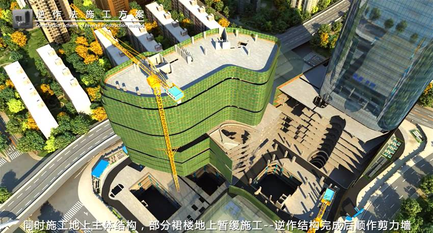 逆作法施工技术是先沿地下室周边施工支护结构,然后施工零米层的梁板楼面结构,作为水平支撑,随后逐层向下开挖土方和浇筑各层地下结构,直至底板封底。从地下结构的形成次序来说,是从上到下逐层建造的,与传统的顺序正好相反,因而称为“逆作法”。