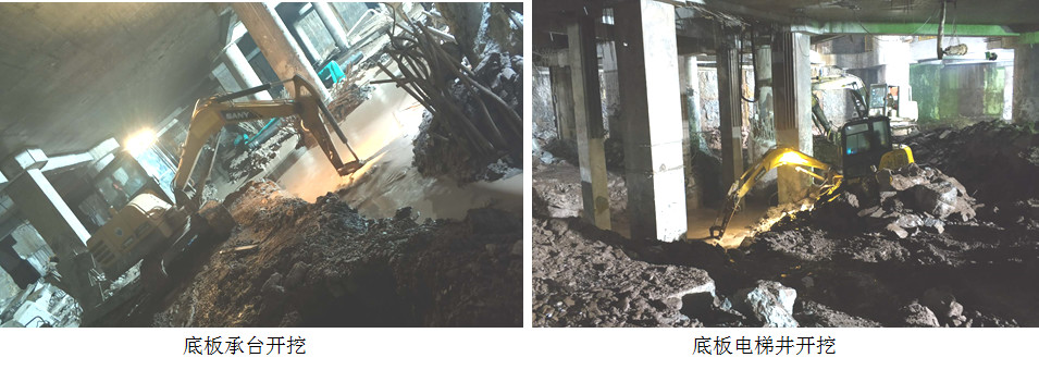 (3)塔楼区钢柱多,跨度间距小,特别是电梯井部位,土方开挖困难,效率极低。