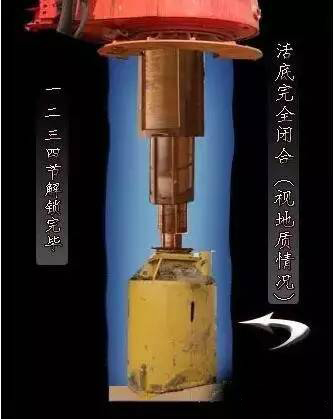 解锁第5步骤:由于钻斗活底关闭阻力小于钻杆继续解锁阻力,因此活底完全关闭。(视地质情况而定)