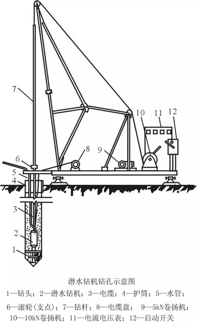 2、成孔机械有潜水钻机、冲击钻机、冲抓锥等。