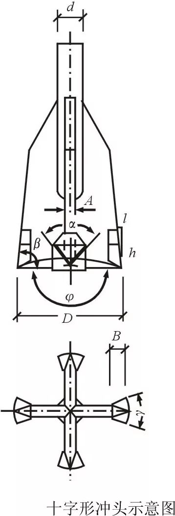 ②冲击钻头形式有十字形、工字形、人字形等,一般常用十字形冲击钻头。