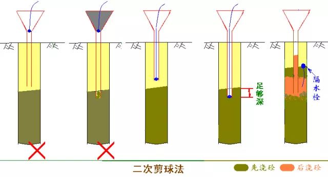 如发现导管漏水,且事故发生的位置能够确定时,可用此法补救。对工艺、经验的要求较高。