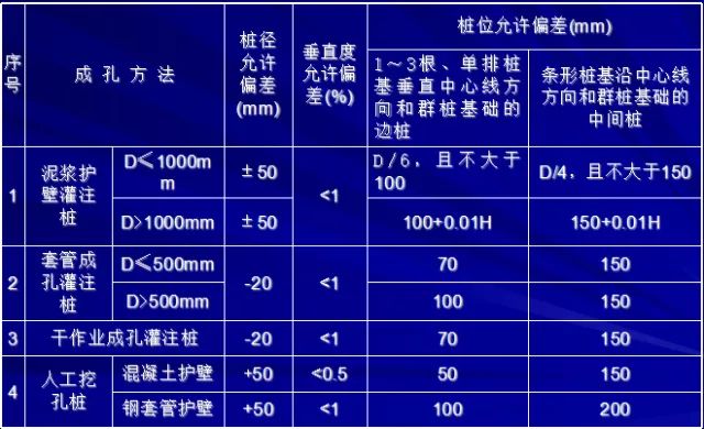 当以摩擦力为主时,不得大于150mm;当以端承力为主时不得大于50mm。