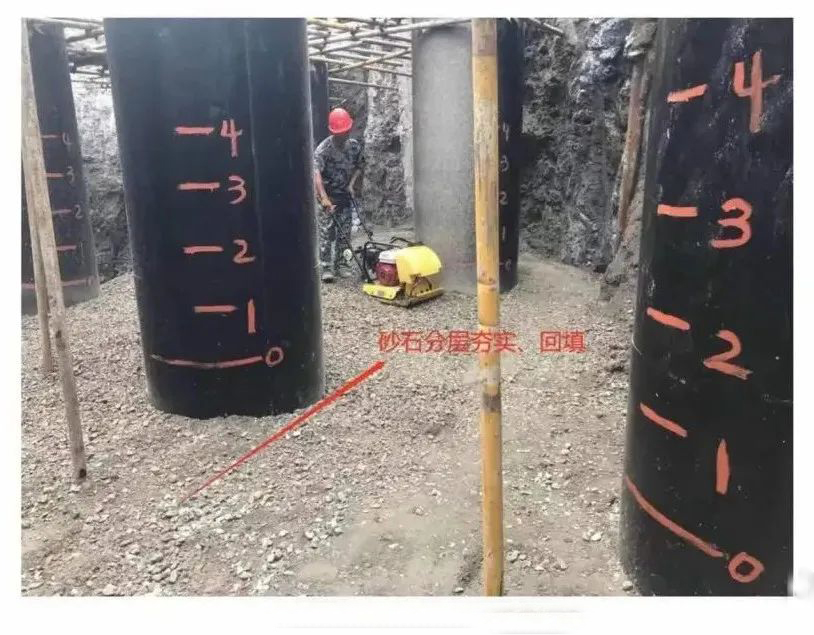 坑内回填必须分层进行,防止对桩进行二次破坏具体施工方案大家要的话可以关注我这里大概讲下