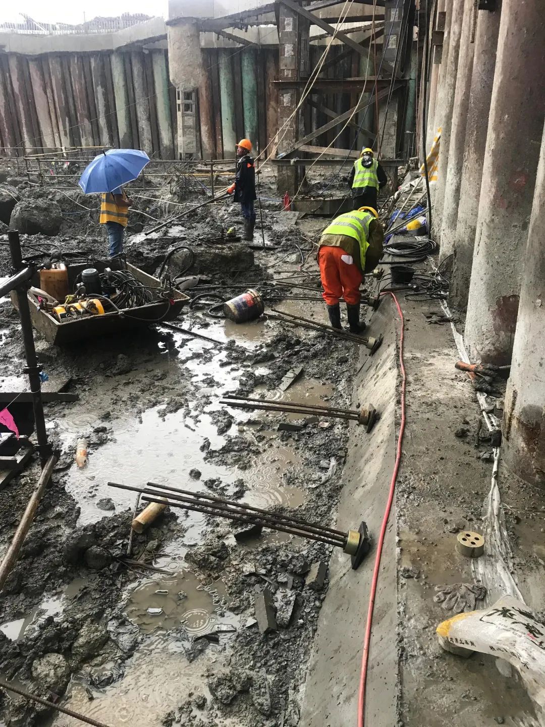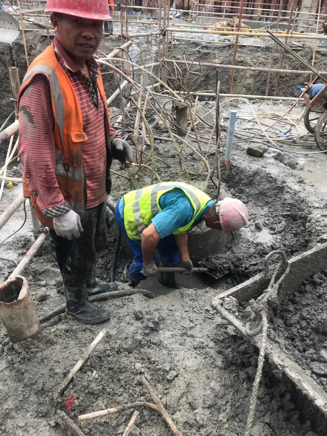 注浆作业,大家看到没,垫层都被高压冲坏了,可想而知高压有多强