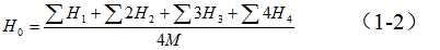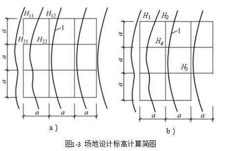 式中,H1、H2、H3、H4分别为一个方格、两个方格、三个方格、四个方格共用角点的标高(m),如图1-3b所示。
