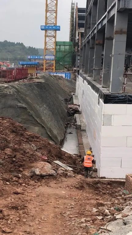 技术难点:项目分为西区,东区两个大区域。在肥槽回填时工期较紧,侧壁回填作业面狭窄,传统回填方式施工难度大,机械跟人工无法下到基坑进行夯实,危险性高。采用四川三合利源环保建材有限公司提供的流态固化土进行填筑,有效解决本项目回填中所需到的难题,同时排除了施工期间的危险隐患。