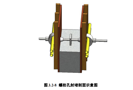 4.3 工序:安装内侧模板→安装螺杆→安装外侧模板→浇筑混凝土→拆模→ 清孔→干硬性防水砂浆填堵→刷防水涂料。