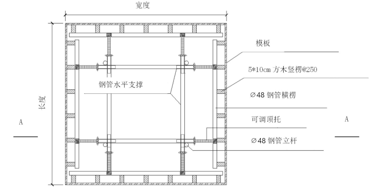 3.1 材料:¢48 钢管、扣件、木模板、木方、砖。