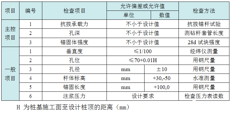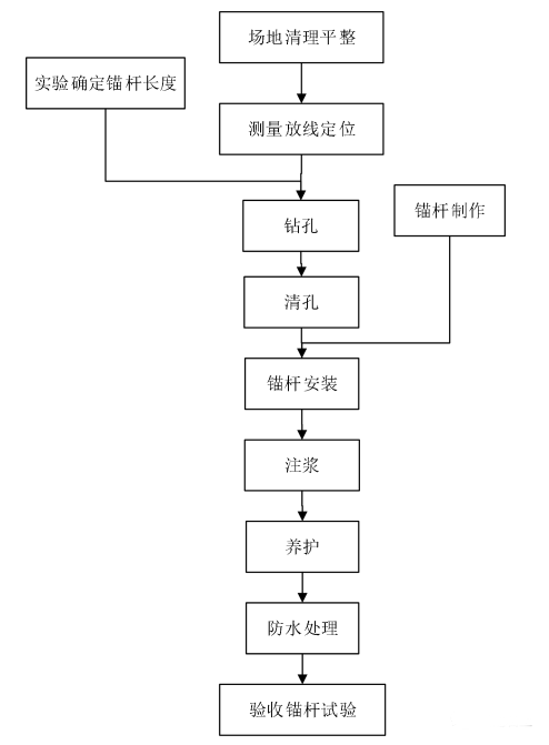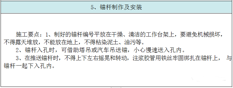 (2)锚杆施工中应对锚杆位置,钻孔直径、长度及角度,锚杆杆体长度。注浆配比、注浆压力及注浆量进行检验。
