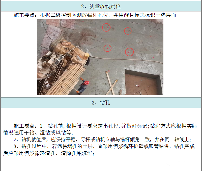 1、现场需先完成基础开挖施工,以免锚杆施工后,挖机无法进入施工区作业;