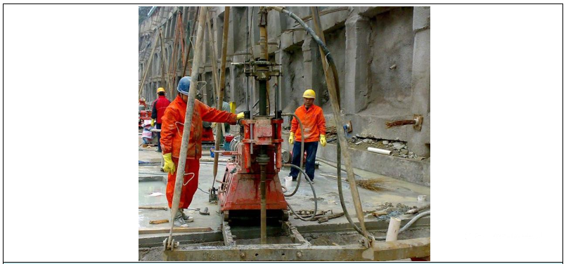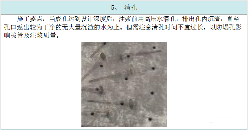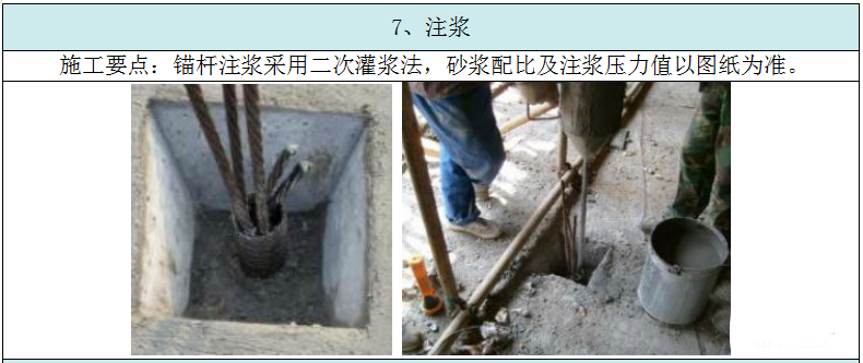 (2)锚杆灌浆时,在孔口出浆后方可将灌浆管逐步往外拨出,确保孔内水泥浆饱满,由于水泥浆凝固时会收缩,因此灌好浆的锚孔,一般在第二天需补灌。