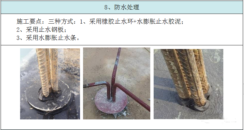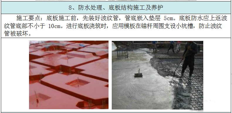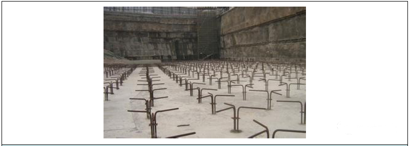 (2)底板工程施工过程中,特别是在钢筋工程的吊运、绑扎时,要注意应保护杆体的弯头,防止施工中对其破坏。