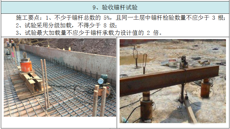 (4)抗拔锚杆试验主要在灌浆后,浆体达到要求强度后实施。一般浆体灌注完成后 14 天可进行试验。
