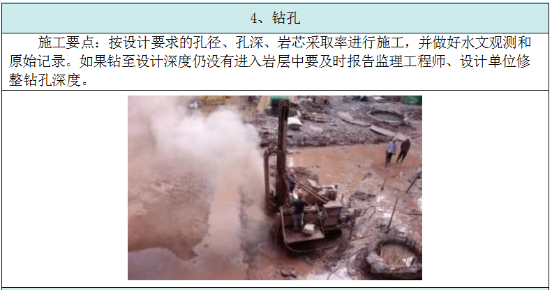 (1)钻机必须安装牢固,钻孔定位准确、稳固,并在施工过程中及时测量观测,确保钻孔的方位和倾角符合要求。钻孔轴线倾斜不得大于孔深的 1%,截面尺寸必须满足设计要求,孔口平面位置与设计桩位在水平、垂直方向的误差不大于 100mm。