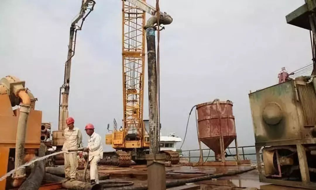 5.清孔在最后一个桩孔达到设计要求后立刻进行清孔作业,以确保不会由于间隔时间过长而导致泥浆沉淀致使钻孔坍塌。