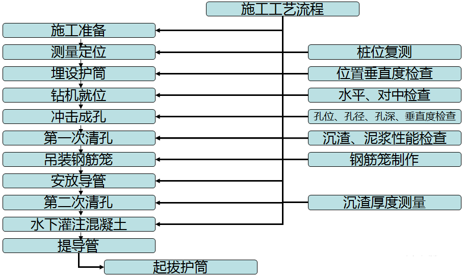 (2)、严格按规程检查沉渣厚度,并清孔后及时灌注混凝土。
