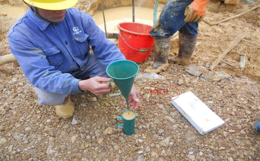 2、采用钻孔的粘土造浆,成孔过程中要及时加水调整好泥浆比重:≤1.25;粘度:18-20S;含砂率:≤6%。