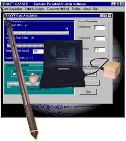 在SCPT测试中,通常有两种类型的传感器,速度(即检波器)和加速度(即加速度计)。为了简化数据采集,所有的硬件和软件组件设计与连接到“信号调节系统”的笔记本电脑一起运行,而不是传统的地震仪。CPT数据由GME数据采集单元记录,由安装在计算机上的数据采集软件CPTest进一步处理。信号调节地震数据由PCMCIA卡进行A/D转化,然后由SC(1‐15)‐DAC™ 软件进行处理。SCPT系统可以扩展到15个通道(如果使用两块A/D板,为30通道),但一般使用单轴(SC1-DAC),三轴(SC3-DAC)和真正的间隔六通道(SC6-DAA)系统。