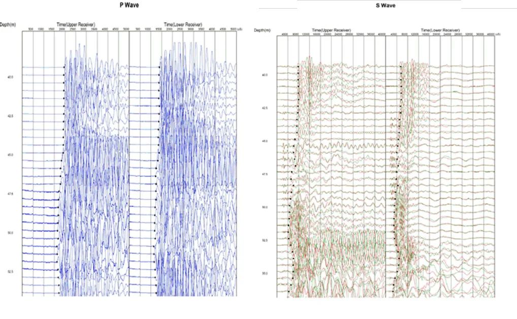 剪切波速Vs是通过一个公式得出,即两接收器离震源的距离差除以两个接受器接受到同一次波形的时间差。